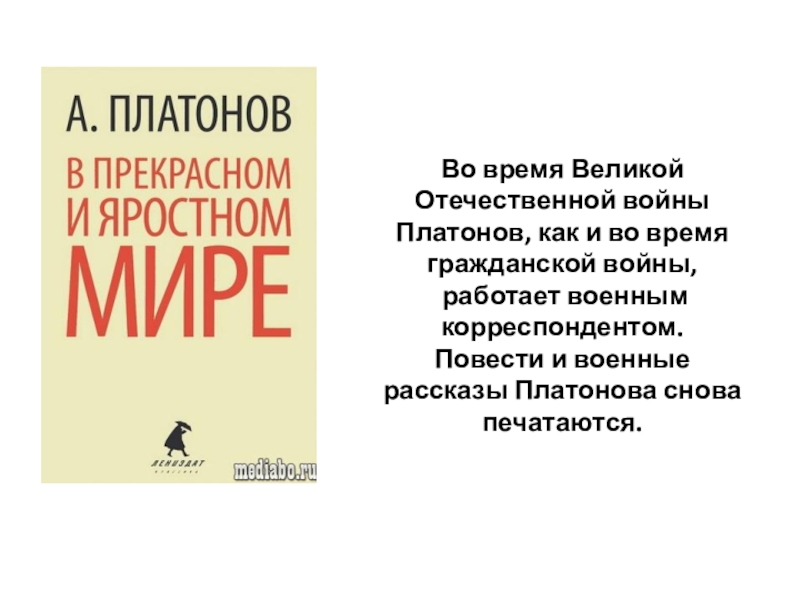 Слайд 15Во время Великой Отечественной войны Платонов, как и во время гражданской