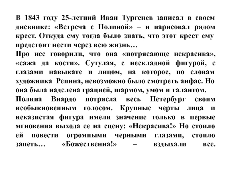 Слайд 13В 1843 году 25-летний Иван Тургенев записал в своем дневнике: «Встреча