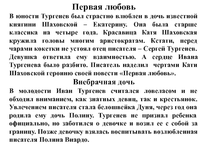 В юности Тургенев был страстно влюблен в дочь известной княгини