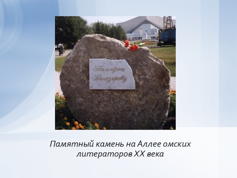 Слайд 12Памятный камень на Аллее омских литераторов XX века
