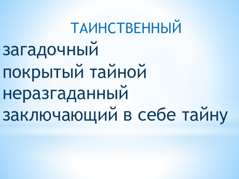 ТАИНСТВЕННЫЙ загадочныйпокрытый тайнойнеразгаданныйзаключающий в себе тайну