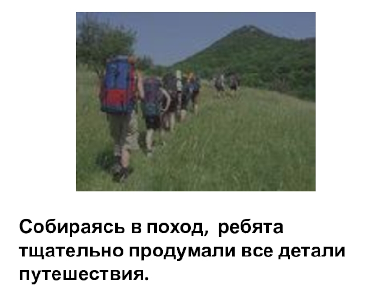 Слайд 7Собираясь в поход, ребята тщательно продумали все детали путешествия.