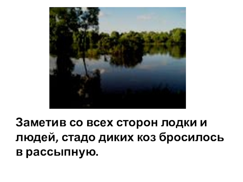 Слайд 11Заметив со всех сторон лодки и людей, стадо диких коз бросилось