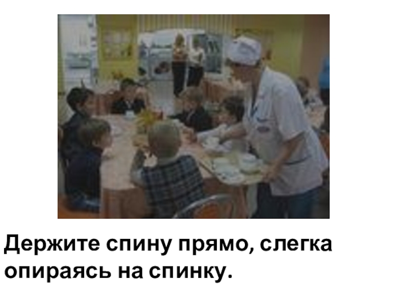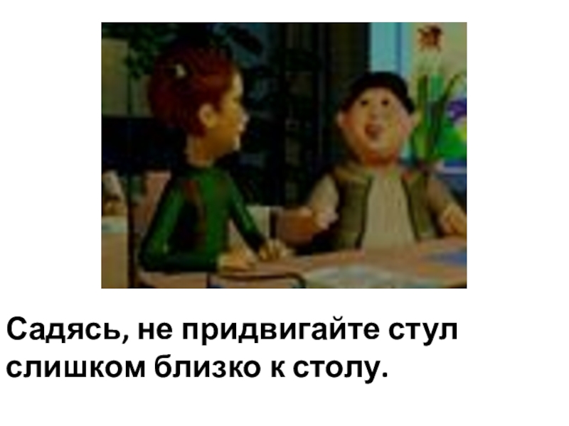 Слайд 2Садясь, не придвигайте стул слишком близко к столу.