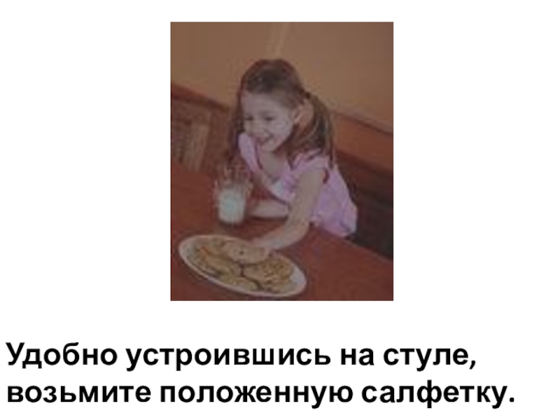 Слайд 4Удобно устроившись на стуле, возьмите положенную салфетку.