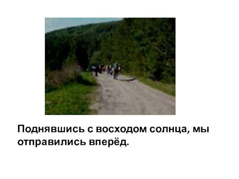 Слайд 8Поднявшись с восходом солнца, мы отправились вперёд.