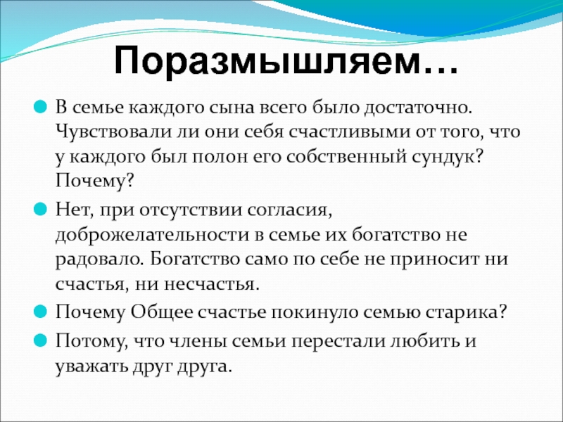 счастливыми от того, что у каждого был полон его собственный сундук? Почему?