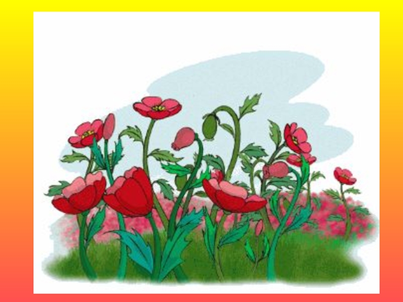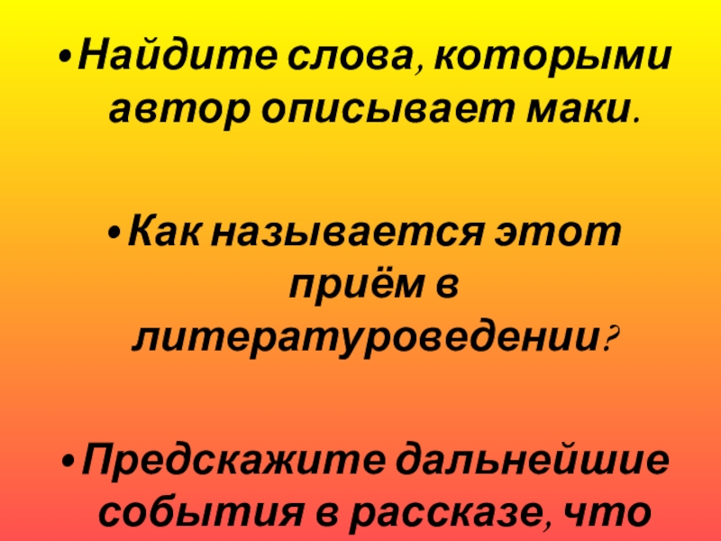 Слайд 17Найдите слова, которыми автор описывает маки.