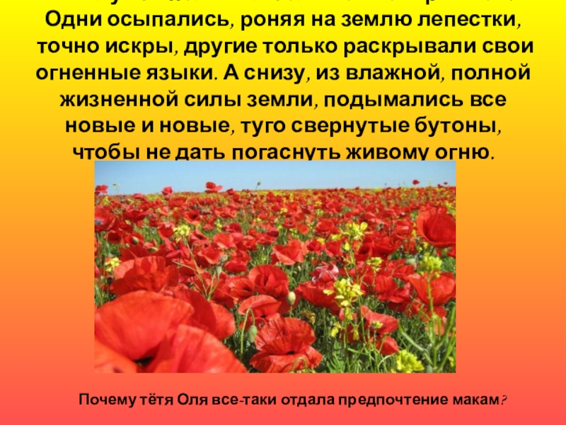 Слайд 11Почему тётя Оля не любила сеять маки?
