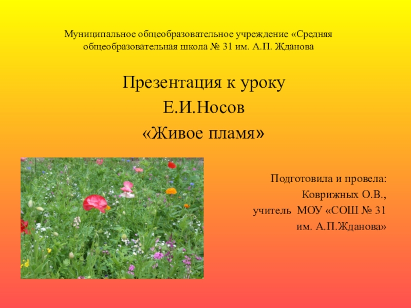 Слайд 1Муниципальное общеобразовательное учреждение «Средняя общеобразовательная школа № 31 им. А.П. Жданова