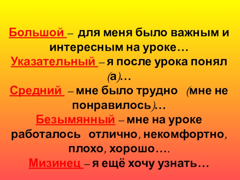 Слайд 27Большой – для меня было важным и интересным на уроке…