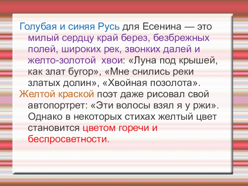 Слайд 25Голубая и синяя Русь для Есенина — это милый сердцу край