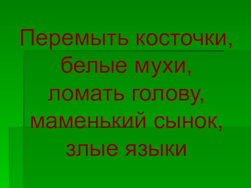 Перемыть косточки, белые мухи, ломать голову, маменький сынок, злые языки