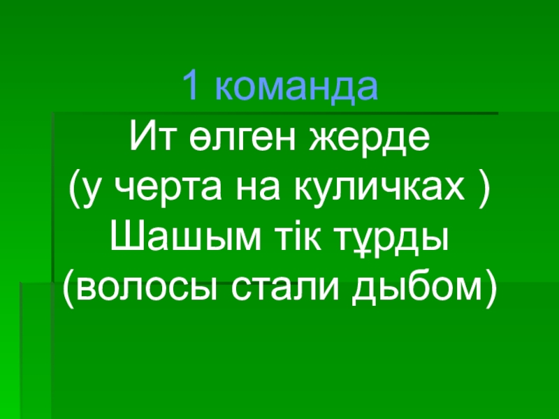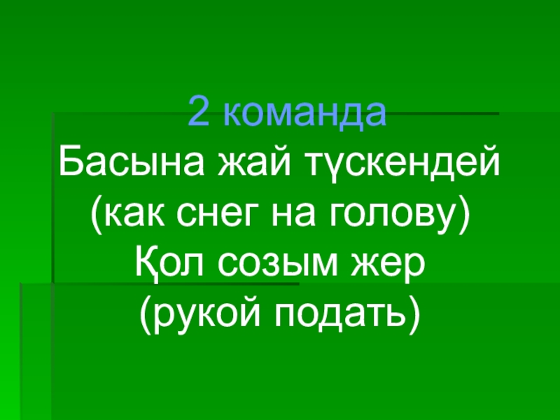 2 командаБасына жай түскендей (как снег на голову)Қол созым жер(рукой подать)