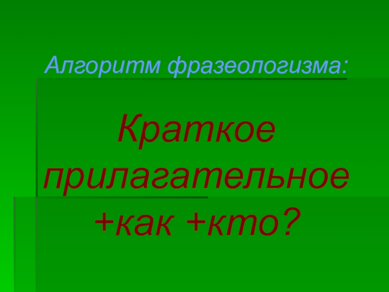Алгоритм фразеологизма:Краткое прилагательное+как +кто?