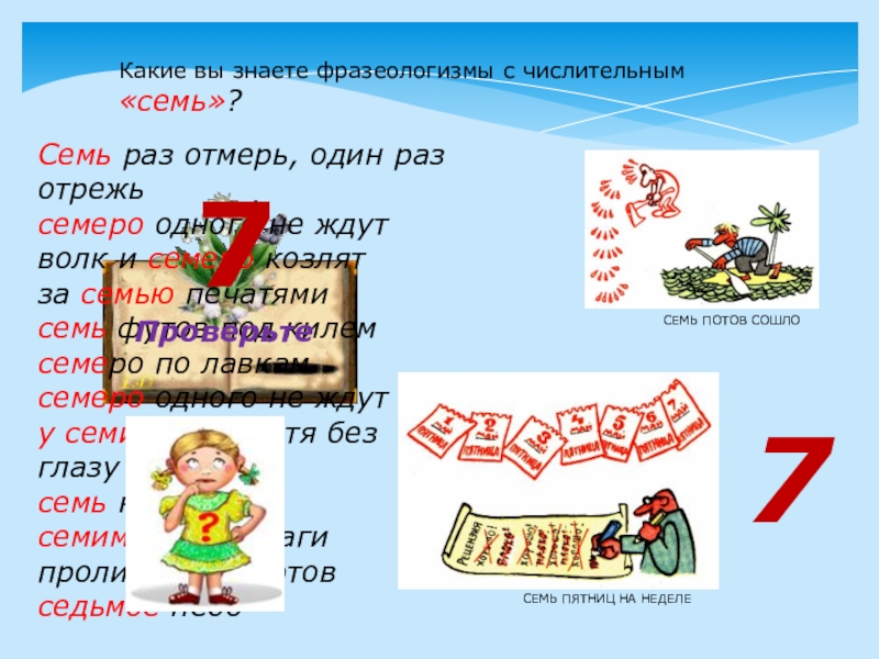 Какие вы знаете фразеологизмы с числительным «семь»?