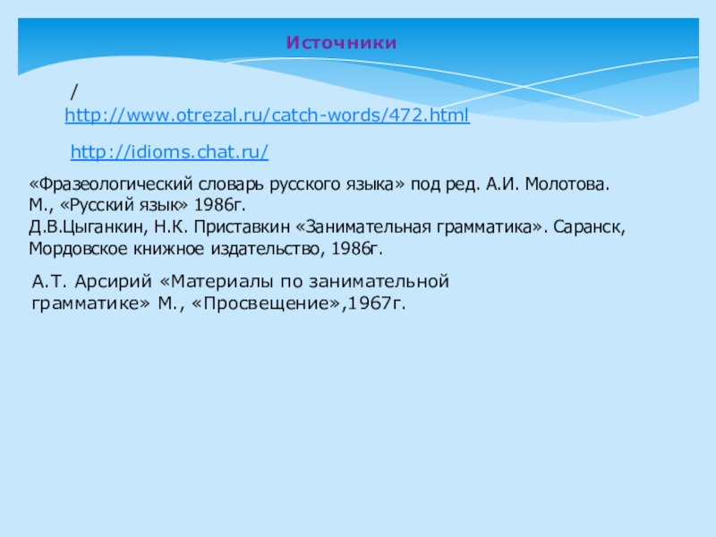 А.Т. Арсирий «Материалы по занимательной грамматике» М., «Просвещение»,1967г.