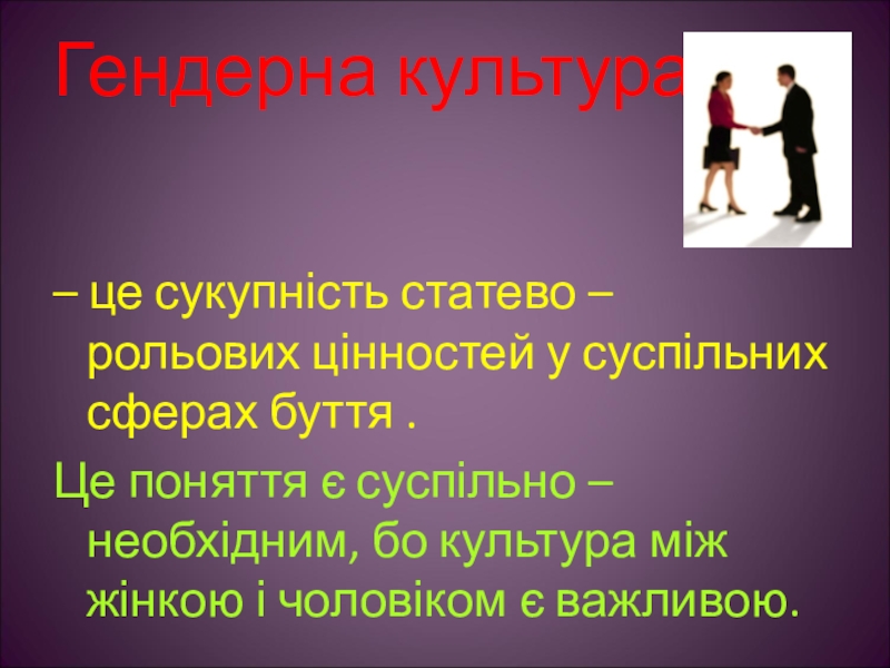 Це поняття є суспільно – необхідним, бо культура між жінкою і чоловіком є важливою.