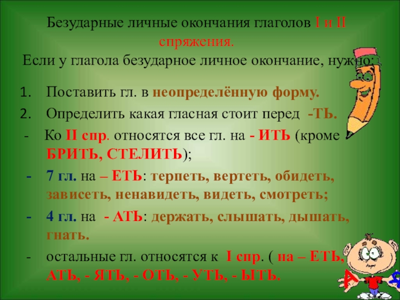 Слайд 8Безударные личные окончания глаголов I и II спряжения.