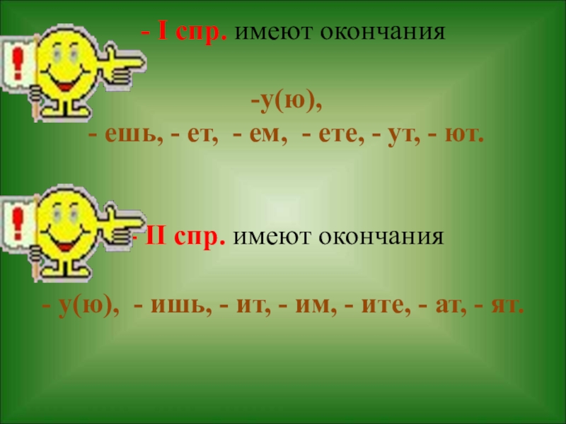 остальные гл. относятся к I спр. ( на – ЕТЬ, - АТЬ, - ЯТЬ, - ОТЬ, - УТЬ, - ЫТЬ.