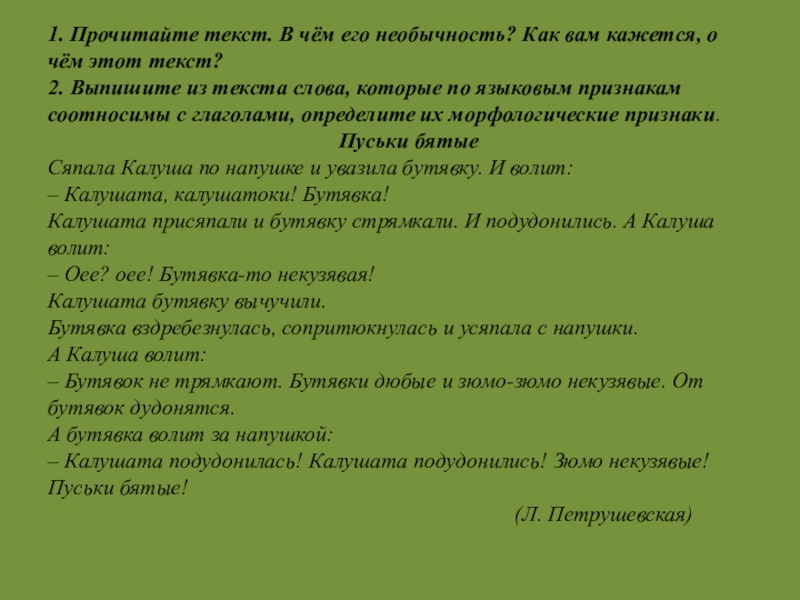 Слайд 141. Прочитайте текст. В чём его необычность? Как вам кажется, о