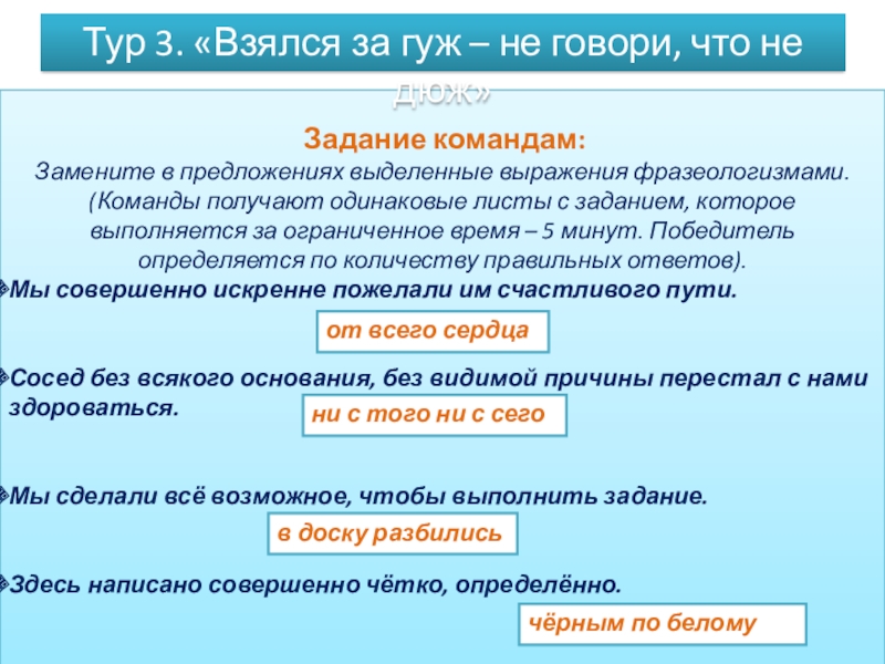 Тур 3. «Взялся за гуж – не говори, что не дюж»