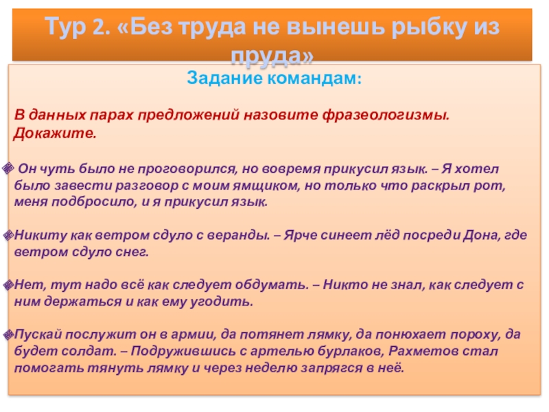Тур 2. «Без труда не вынешь рыбку из пруда»