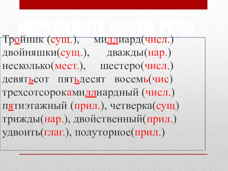 Слайд 13ОПРЕДЕЛИТЕ ЧАСТИ РЕЧИ