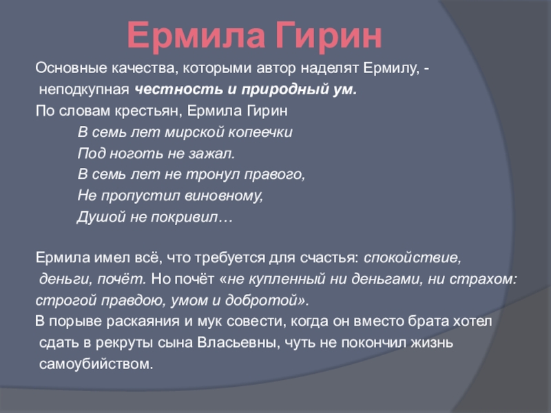 Ермиле, но и высокая честность всего крестьянства (оставшийся рубль)