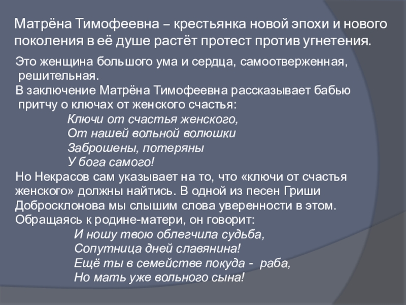 Но Некрасов сам указывает на то, что «ключи от счастья