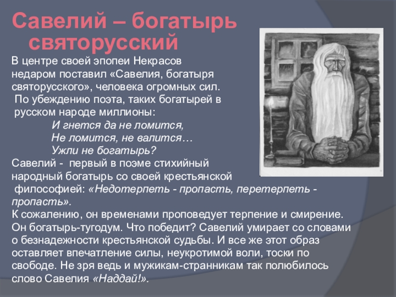 Героем этой поэмы он избрал весь русский народ, все многомиллионное «мужицкое царство». Такой всенародной поэмы еще не было в России.
