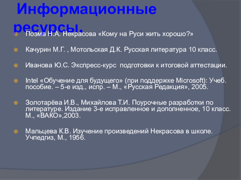 Мальцева К.В. Изучение произведений Некрасова в школе. Учпедгиз, М., 1956.