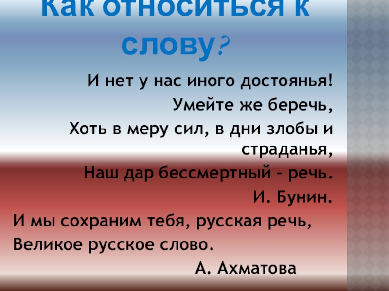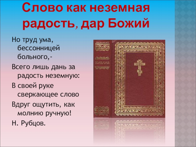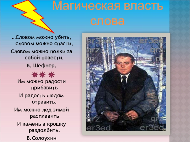 нашей жизнью, власть магическую, мы заколдованы словами и в значительной степени живем в их царстве» Н.Бердяев.