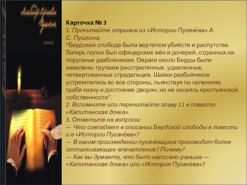 1. Прочитайте отрывки из «Истории Пугачёва» А.С. Пушкина.