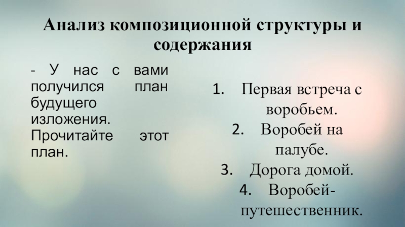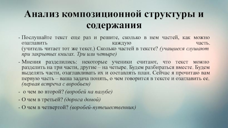 Слайд 6Анализ композиционной структуры и содержания