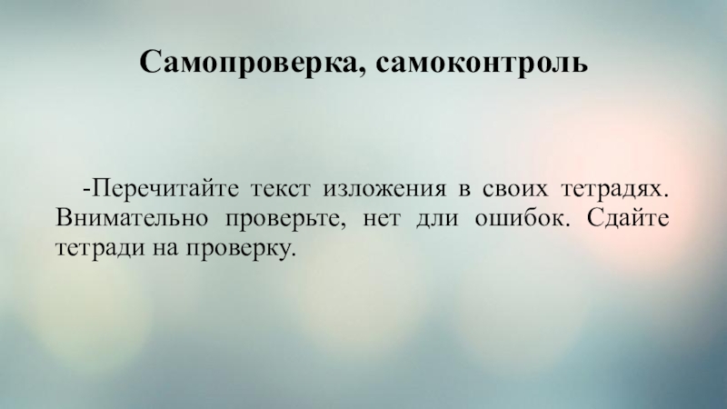 -Перечитайте текст изложения в своих тетрадях. Внимательно проверьте, нет дли