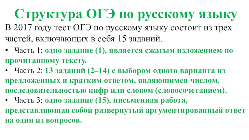 • Часть 1: одно задание (1), является сжатым изложением по прочитанному тексту.