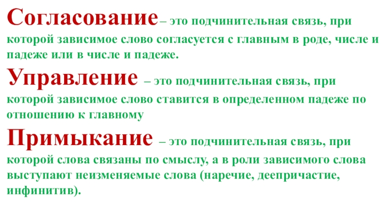 Слайд 11Согласование – это подчинительная связь, при которой зависимое слово согласуется с