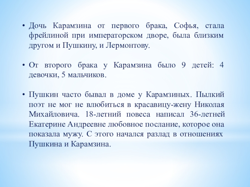 Слайд 30Интересные факты из жизни Карамзина