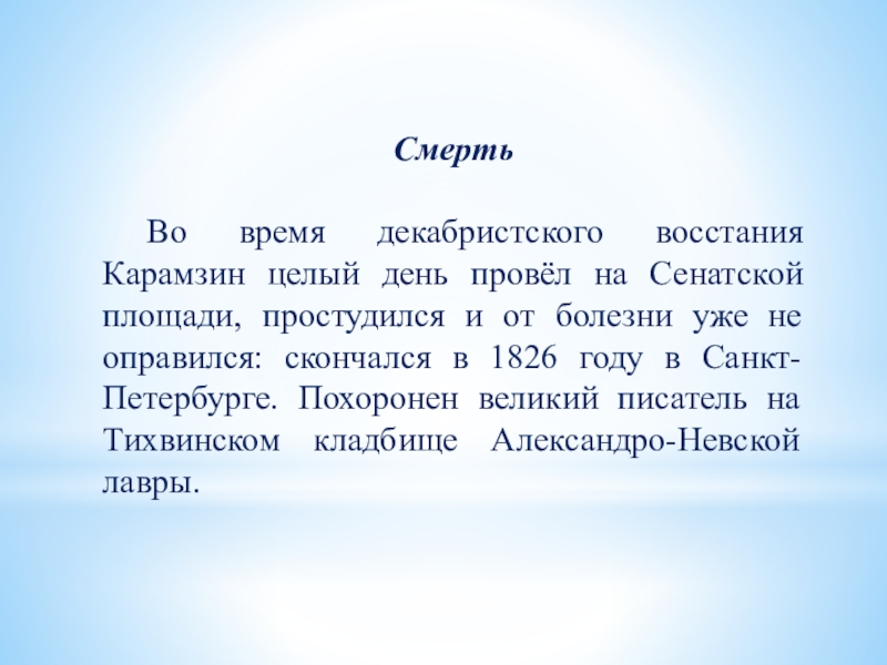 Слайд 29Николай Михайлович Карамзин умер в 1826 г., не закончив работу над