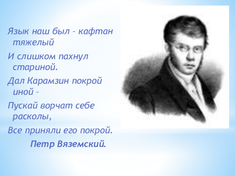 Слайд 27Язык наш был – кафтан тяжелый