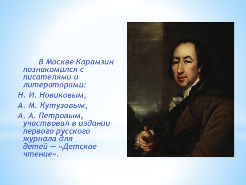 В Москве Карамзин познакомился с писателями и литераторами: