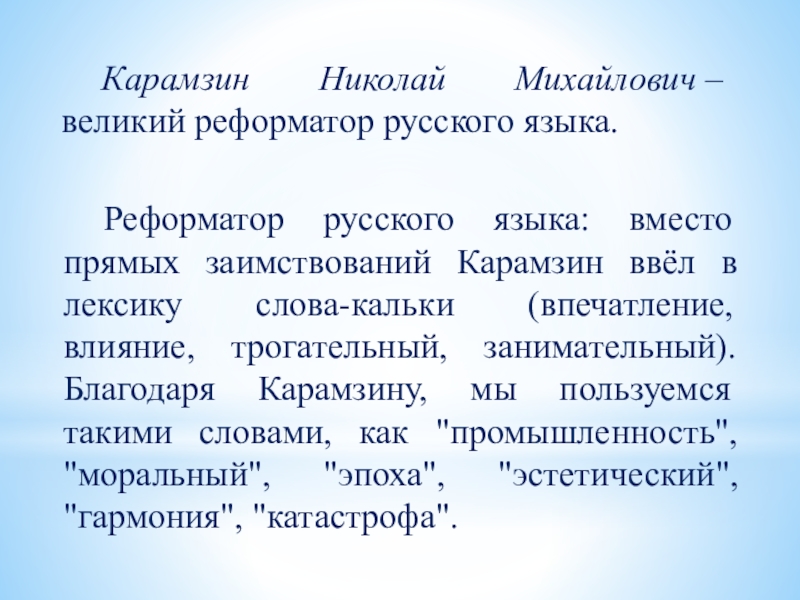 Карамзин Николай Михайлович – великий реформатор русского языка.