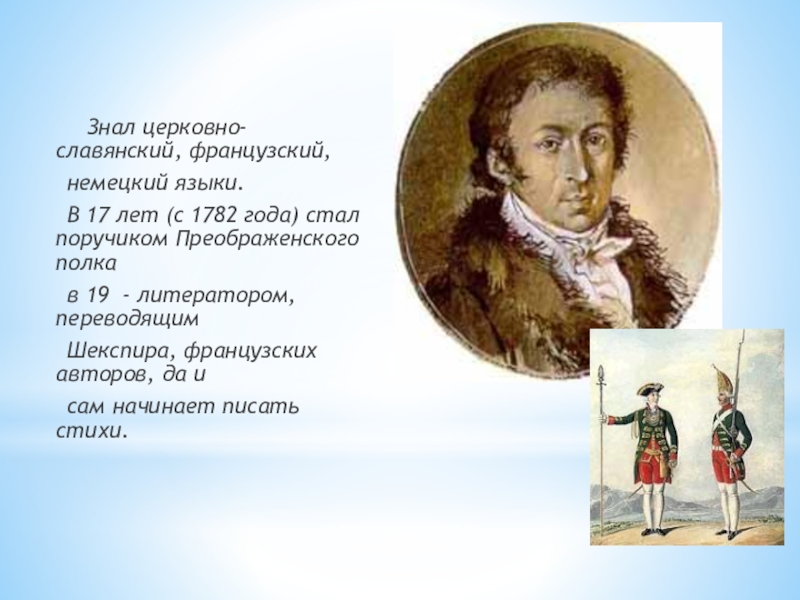 В 17 лет (с 1782 года) стал поручиком Преображенского полка