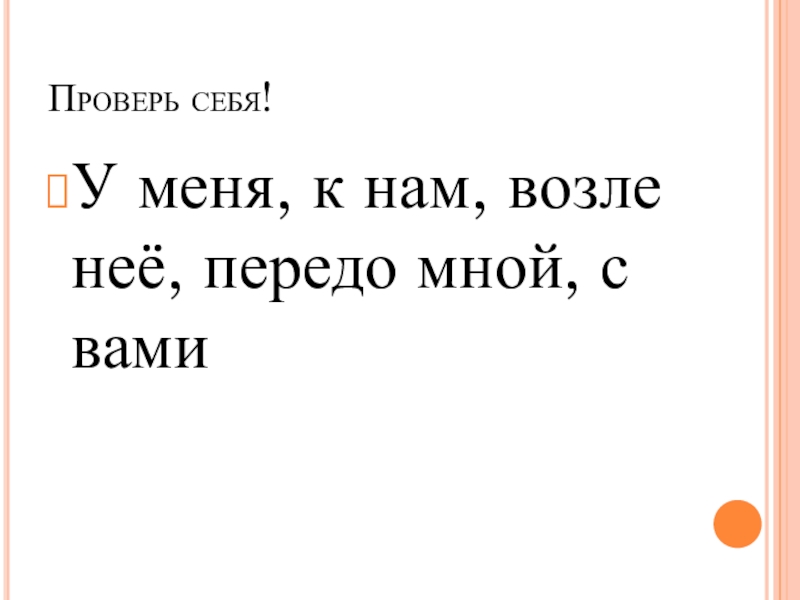 Проверь себя!У меня, к нам, возле неё, передо мной, с вами