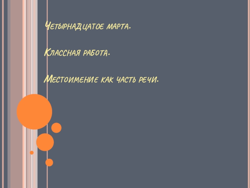 Слайд 4Четырнадцатое марта. Классная работа. Местоимение как часть речи.