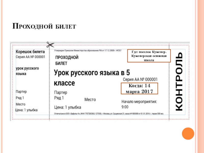 Проходной билетКогда: 14 марта 2017Где: поселок Куженер. Куженерская основная школа