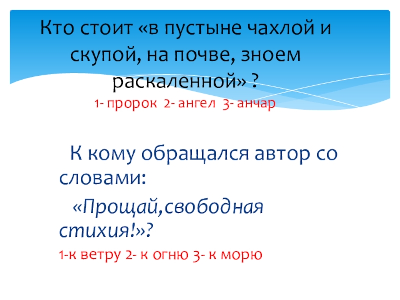 Кто стоит «в пустыне чахлой и скупой, на почве, зноем раскаленной» ?