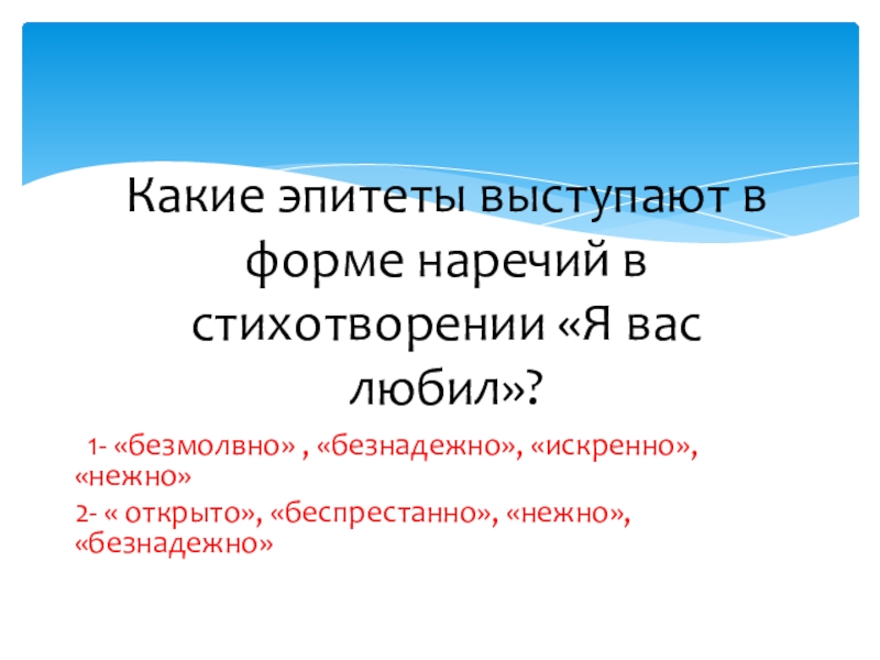 Какие эпитеты выступают в форме наречий в стихотворении «Я вас любил»?