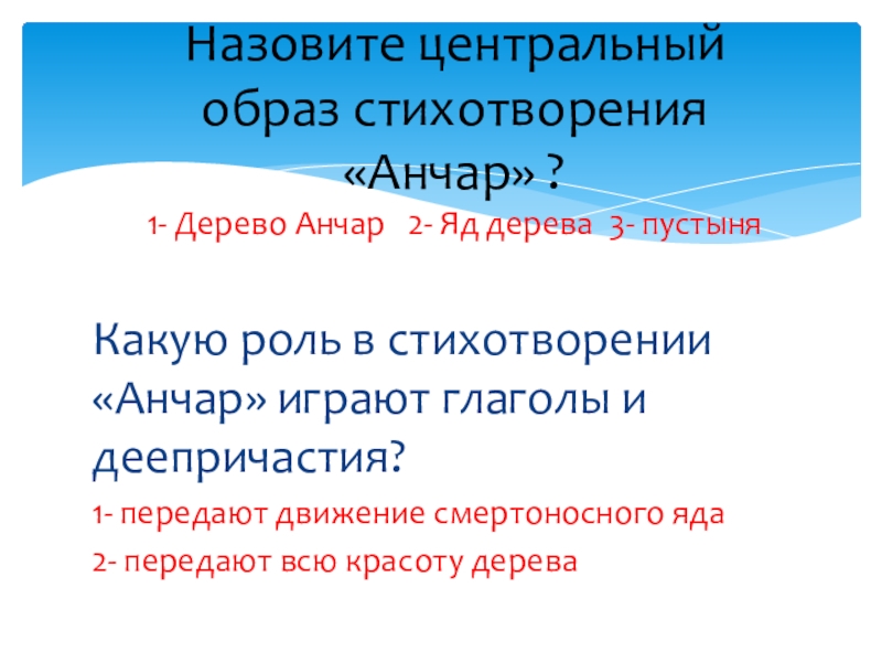 1- Дерево Анчар 2- Яд дерева 3- пустыня